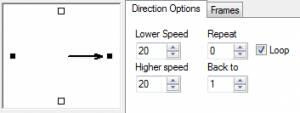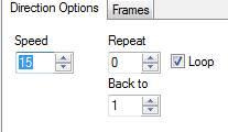 После импорта перейдём из вкладки Frames во вкладку Directions Options и установим цикл и скорость смены кадров, например, в 15.