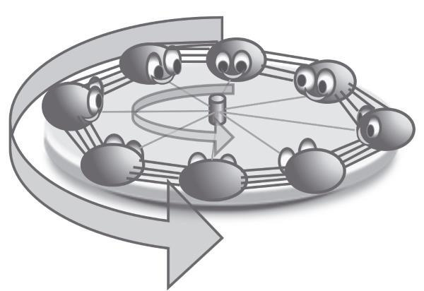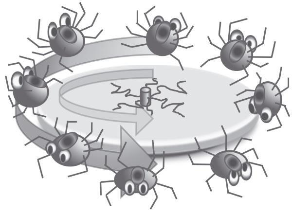 2. Но скорость карусели оказалась слишком высокой, и паутинка не выдерживает такой центробежной силы. Паутинки порвались, паучки разлетелись (галактика рассыпалась).
