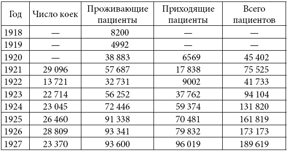 Таблица 1.1. Число коек и пациентов в советских санаториях, 1920-1927