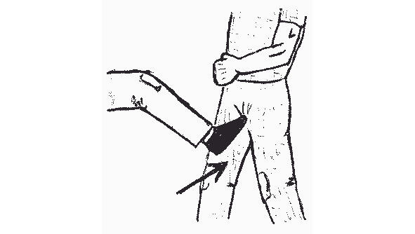 Теперь отдадим дань уважения так горячо любимому всеми самооборонщиками удару ногой снизу в пах. Этот удар можно отнести к «складывающим», хотя нападающий сгибается здесь не в результате самого удара, а от сильной боли. Удар хорош, самое главное чтобы он попал точно в цель. Пинок снизу в пах наносится носком обуви или подъемом стопы, и при точном попадании может остановить противника. Однако при таком ударе можно легко промахнутся и попасть по ноге или в живот, поэтому не стоит возлагать на этот прием всех своих надежд.