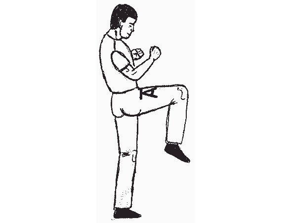 Существует три основных способа выведения противника из устойчивого равновесия и сбивания его с ног при помощи ударов: 1- свалить (ударом в голову); 2- сложить (ударом в низ живота, или поясницу); 3- скосить (ударом по коленям и другим уязвимым участкам ног). Удары ногами в драке позволяют «складывать» (прямой пинок, пинок в сторону и назад) (рис 9 и 10) и «косить» (боковой пинок, нижнебоковой пинок) неприятеля (рис 11). Топчущий удар ногой сверху не «складывает» и не «косит», зато позволяет травмировать голеностоп врага, лишая того подвижности. Помимо этого, топчущим ударом ногой сверху можно добивать упавшего на землю злоумышленника. Для нанесения топчущих ударов ногой следует, в первую очередь, использовать каблуки обуви (рис 12).