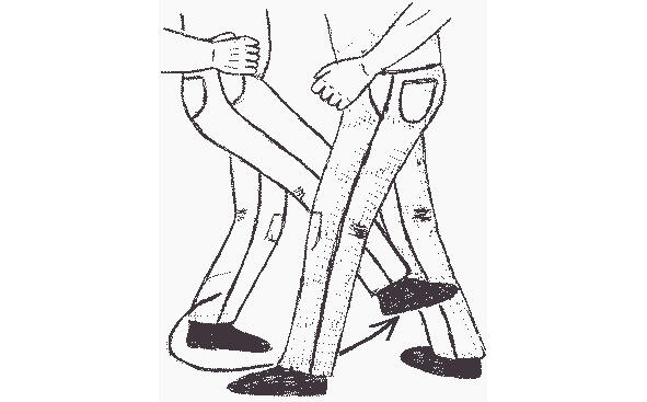 Эффективность пинка в сторону (рис 14 а) может уменьшаться, когда его применяют против наступающего противника. Женщинам при этом следует уметь направить свою контратаку в наиболее уязвимые точки нападающего. На рисунке 14 защищающийся компенсирует недостатки приема, нацеливая его в боковую часть вражеского колена, что работает наиболее эффективно. Главная задача при нанесении удара это скоординировать поворот опорной ноги с резким выводом бедер вперед. Эти движения следует отработать на тренировках, чтобы они слились в один рывок навстречу цели.