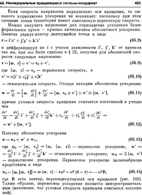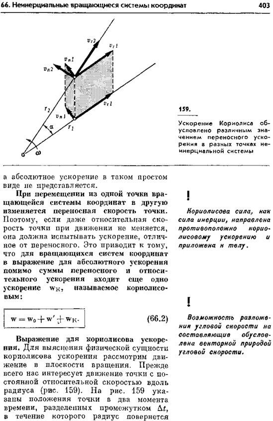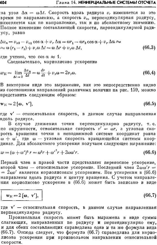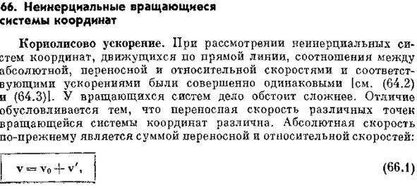 Из выражения (66.4) следует, что ускорение Кориолиса это изменение абсолютной скорости в направлении перпендикулярном радиусу, которое обеспечивается двумя самостоятельными независимыми ускорениями: