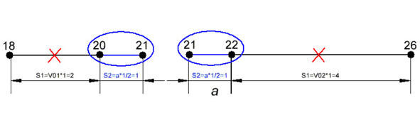 Начнём с прямолинейного движения, в котором ошибки не столь критичны и ограничиваются лишь некоторым некритичным для истины абстрагированием от реальности. Итак, на рисунке (4.1.1.1) показаны два отдельных участка прямолинейного равноускоренного движения с координатами (18 м, 21 м) и (21м, 26 м) с секундным интервалом внутри каждой пары координат.