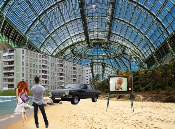 Объявили мою станцию, я вышел из электрички, осмотрелся, увидел выход с перрона и направился к нему, он находился ровно в середине платформы, контролёр остался у последнего вагона ждать, наверное, следующий поезд, может, там повезёт зайца встретить. Дойдя до выхода, стал спускаться, лестница была довольно крутая, длинная и почти вся разбитая, бетон раскрошен, везде торчит арматура, смотреть пришлось под ноги, чтобы ничего себе не сломать, и к тому же петлять. Я зачем-то пошёл ровно по середине, потом перебрался правее к перилам, при этом про себя не по-детски ругал всех подряд, кто должен отвечать за содержание этой лестницы. Пройдя последнюю ступеньку и ступив на тротуар, почувствовал, что меня обдало жаром, как будто дверь в парную открыл, стало намного светлее. Поднял голову и остолбенел, реально жарко, синее-синее небо и никакого дождя, даже облаков нет. Сделав пару шагов вперёд, повернулся в сторону платформы, но её почему-то отсюда видно не было, да фиг с ней, сейчас меня восхищал этот феномен с погодой, вот чудеса природы, подумал я, снял с себя джинсовку и огляделся. Это оказался обычный маленький провинциальный городок, в то время они почти все были одинаковые, в ужасном состоянии, а этот выглядел очень достойно, складывалось впечатление, что в нём только что закончили капитальный ремонт, или недавно построили. Маленькая привокзальная площадь шла полукругом, по бокам стоят небольшие двух-трёх этажные дома яркой окраски, красные, жёлтые, белые. Стал искать взглядом свою платформу, но её не видно, зато лестница была, и новенькая, правда, совсем небольшая, платформа, наверное, скрывалась за этими красивыми домами. Вот чудеса, я же по ней шёл и такие дома не мог не заметить, и где дождь, он стал усиливаться, и почему лестница другая и короткая? Так, сказал я себе, судя по всему вслух, сначала дела, а потом буду разбираться с этой аномалией. Недалеко от того места, где я стоял, виднелось кафе, по вывеске определил, в середине сквер с памятником, кажется Ленину, перед ним большая вывеска из отдельно стоящих букв красного цвета: