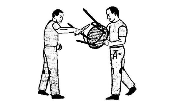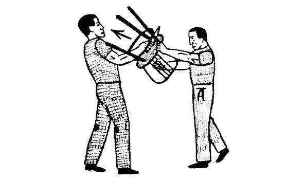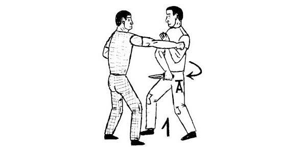 С самого начала нападения нужно внимательно наблюдать за вооруженной ножом рукой противника, так как каждый не отраженный удар несет угрозу здоровью и жизни. Если у вашего противника нож, а вы безоружны, то следует чем-нибудь вооружиться, например, поднять с земли палку и тому подобное. Это уравняет ваши шансы.