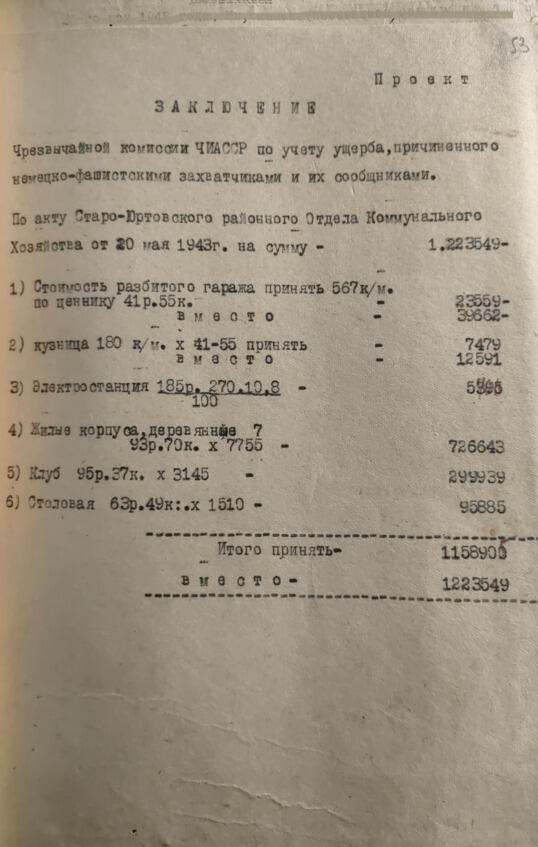 Комиссия Чечено-Ингушской АССР по установлению и расследованию злодеяний немецко-фашистских захватчиков и их сообщников при сем препровождает акты и реестры по учету ущерба немецко-фашистскими захватчиками и сообщниками по ЧИАССР на сумму Руб. 25036,3 тыс., пересоставленные по Вашему указанию. Подпись: Ответственный секретарь Комиссии по ЧИАССР: А. Кеворков. 23 ноября 1943 года.