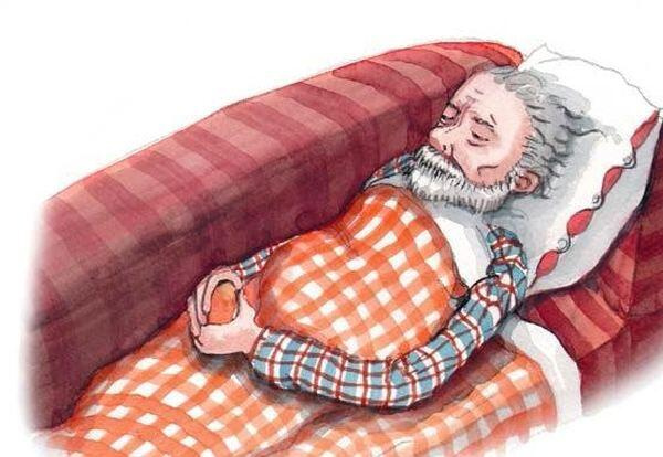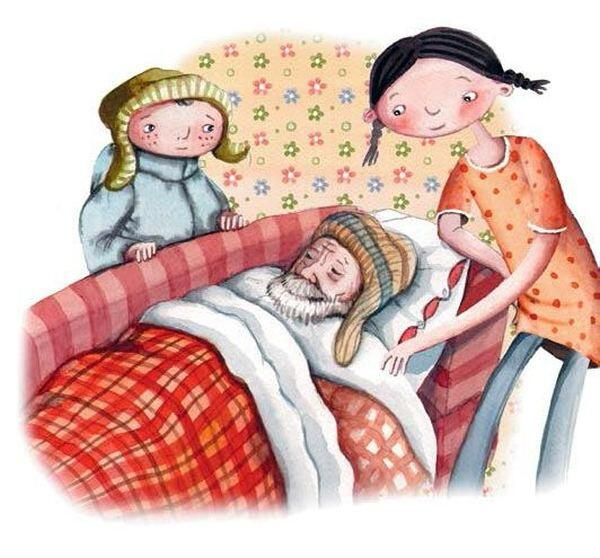Дедушка лежал на диване. Он стал совсем худым даже каким-то плоским. Таким, как цветы, которые Анька сушила всю осень между страницами энциклопедии. Его почти не было видно под тёплым оранжевым одеялом.