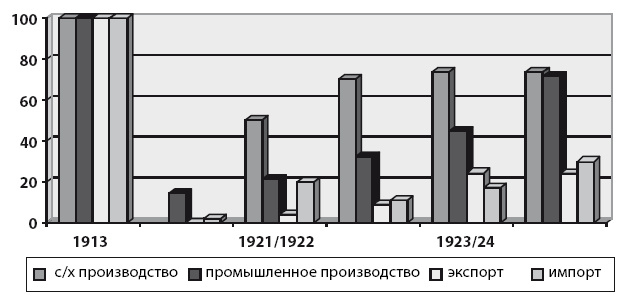 Рис. 2. Восстановление экономики во время НЭПа (1913 год 100 %)[35]