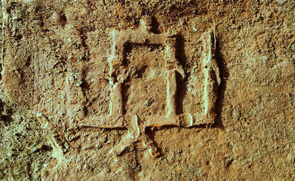 Цагліна з гродзенскага замка Вітаўта з геральдычным знакам Калюмны.