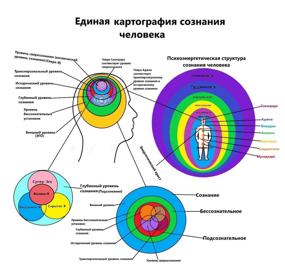 В 2022 году автор этой книги разработал более обширную картографию сознания, которую назвал «Единая картография сознания человека», в которой выделил трансперсональный уровень и уровень сверхсознания, возможно именно эти глубинные области отвечают за так называемый контакт с Высшим разумом.