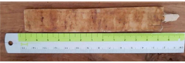 Ритуалы камбо приходят на Запад с начала этого века, и все больше и больше пользователей отмечают положительный эффект на здоровье после их использования [3]. После сбора лягушачьей слизи ее сушат на так называемой палочке Камбо (рис. 1).