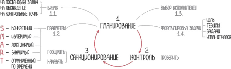 СанкционированиеПо итогам контроля нужно проводить управляющие воздействия: поощрять или наказывать, давать обратную связь либо менять параметры задания. Например, сменить исполнителя, поскольку тот делает задачу критически медленнее плановой скорости.