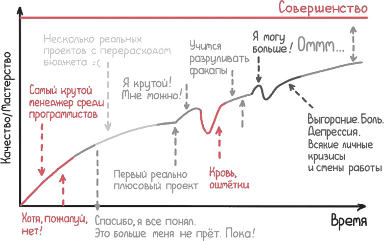 Как выглядит кривая роста компетенций и профессионализма руководителя? А это действительно кривая.