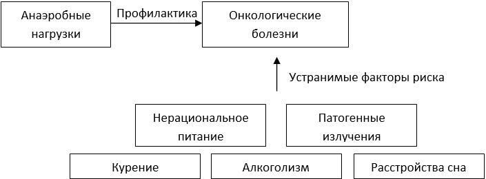 Лучшим средством профилактики онкологических болезней являются анаэробные нагрузки, например, калистеника, т.к. от них выделяются гормоны, усиливающие процессы анаболизма (построения) и катаболизма (разрушения) обновления организма; в том числе обновление молекул ДНК, следовательно, повреждённые молекулы ДНК, постепенно устраняются. Подтверждением этого является тот факт, что люди, занимающиеся физической культурой, заболевают раком в два раза реже, чем не занимающиеся.