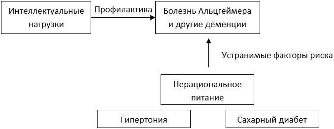 Но болезнь Альцгеймера (в 70% случаев именно болезнь Альцгеймера является причиной деменции) развиваются не только у людей, находящихся в группе риска. Поэтому важно не только устранить факторы риска болезни Альцгеймера, но и заниматься её профилактикой. Судя по всему, наиболее эффективным (и наиболее сложным) способом профилактики болезни Альцгеймера, является развитие мозга: сосудов мозга и увеличения количества полезных связей между нейронами мозга. Хоть это и не устраняет причины развития болезни, но за счёт развитого мозга болезнь наступает горазда позже. Подтверждением этого являются некоторые факты. Во-первых: чтение, настольные игры, разгадывание кроссвордов, игра на музыкальных инструментах, регулярное общение, смягчает протекание болезни Альцгеймера. Во-вторых, люди интеллектуальных профессий, прежде всего учёные и инженеры, гораздо реже болеют деменцией.