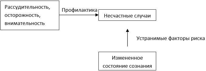 Факторами риска несчастных случаев являются: измененное состояние сознания (алкогольное опьянение, или опьянение, вызванное другими психоактивными веществами); детский, подростковый, пожилой возраст. Способы профилактики: рассудительность, осторожность и внимательность. Собственно, именно из-за невнимательности, неосторожности, глупости происходит большинство несчастных случаев.