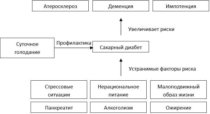 От сахарного диабета умирает 2,6% людей. Сахарный диабет это недостаточность гормона инсулина, приводящая к нарушению усвоения глюкозы. Нарушение усвоения глюкозы приводит к гипергликемии (повышенному содержанию глюкозы в крови). Сахарный диабет увеличивает риски: атеросклероза, болезни Альцгеймера и других деменций, импотенции. Факторы риска сахарного диабета: панкреатит; токсическое поражение поджелудочной железы (например, при алкоголизме); стрессовые ситуации; ожирение; переедание в особенности злоупотребление сладким; малоподвижный образ жизни; наследственная предрасположенность; и др.