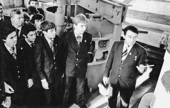 Иван Панфиловский с группой учащихся ГПТУ 37