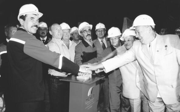 Пуск новой линии во время визита на комбинат В. В. Путина