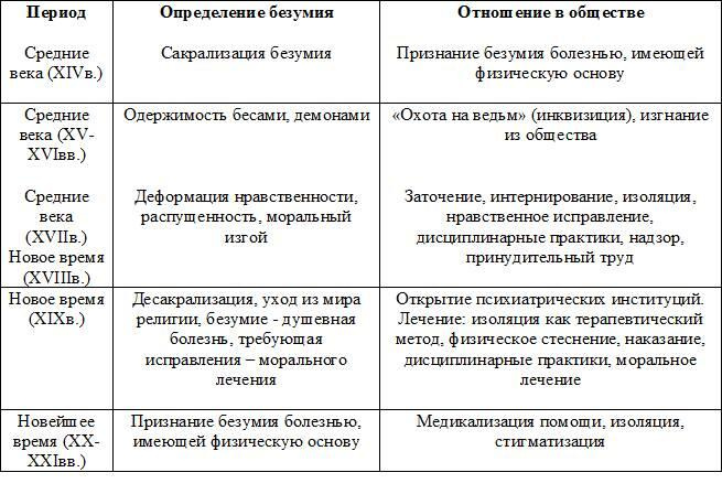 Таким образом, различные исторические периоды характеризовались более или менее специфическим пониманием безумия и отношением к нему в обществе. В обобщенном виде эти представления показаны на рис. 4.