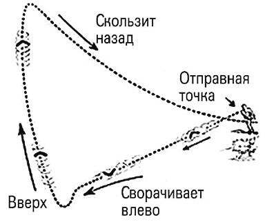 Если бумеранг запустить горизонтально, как «боевой бумеранг», он не возвратится, но зато будет подниматься. Если запустить вертикально, то он опишет восьмерку Мёбиуса, подобную солнечной аналемме[2], и вернется в ту же точку (рис. 9).