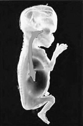 Плод, находящийся в утробе матери, одновременно растет из двух точек «аттрактора», между которыми протягивается «кабель» блуждающий нерв, и оба мозга начинают развиваться параллельно, притягиваясь друг к другу и заполняясь потоками материи (что можно видеть и на тепловизоре (рис. 6).