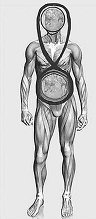 Один из «земных шаров», лежащих в животе, отвечает за сому (за здоровье нашего тела), а второй, находящийся в голове, за сознание (рис. 7).