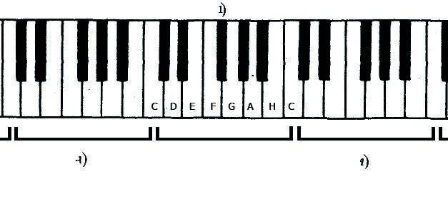 Всего существует 7 нот на белых клавишах, черные же это повышение или понижение ноты.