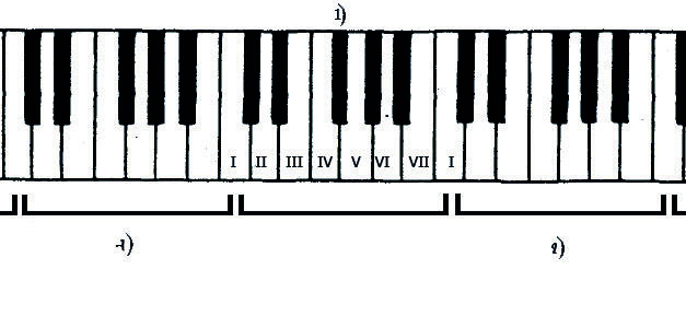 Теперь возьмем основную октаву, обычно с нее и начинается изучение клавиатуры. Нам нужно разделить данный отрезок или заполнить пространство от начала и до конца данной октавы.