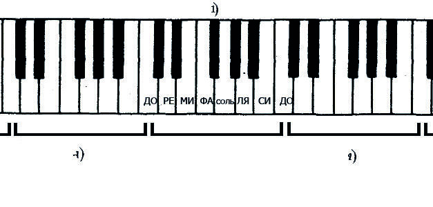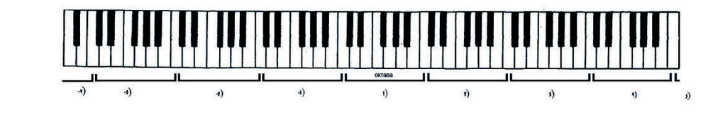 В первую очередь обратите внимание на картинку, сейчас мы начнем ее делить по частям, чтобы составить первое представление об инструменте. Мы видим белые клавиши и черные, как в шахматах. Что такое «октава»?