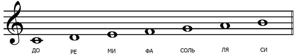 Название нот: до ре ми фа соль ля си (как представлено на клавиатуре выше).