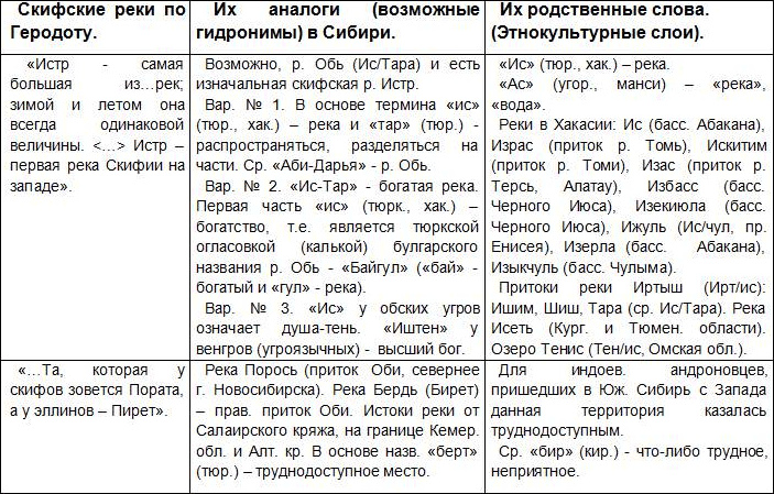 Явственно видна традиция сибирских скифов (как, впрочем, и индоарийцев) переносить названия рек вглубь занимаемой ими страны по мере продвижения на Запад.