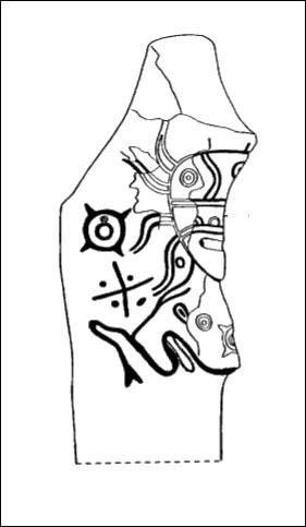 Рис. 6. Шаманский жезл из кости с изображением Валы (Алы).