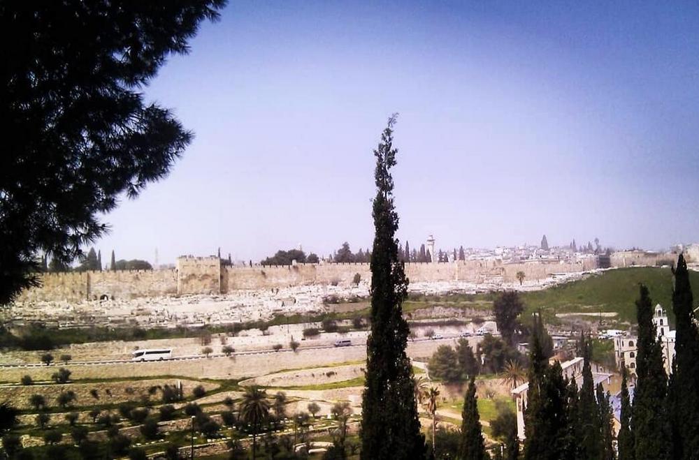 Вид на Иерусалим сверху, на замурованные Золотые Ворота с мусульманским кладбищем перед ними