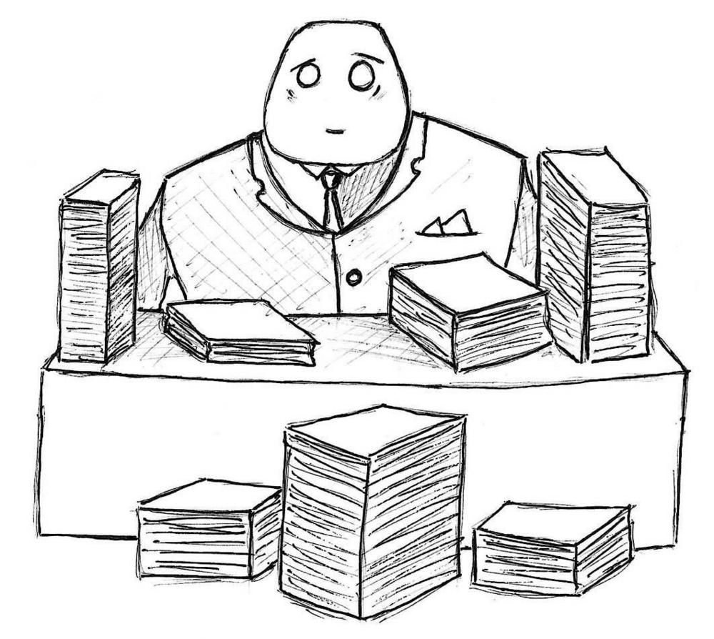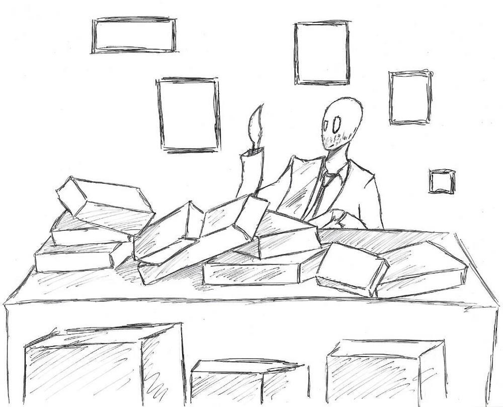 Now, man is thinking about papers. Papers may be green, orange, red, blue, brown, white. His job is very important, because he must be sorting papers by colors. After it, special men take papers away. Different special men bring him colorful papers. Different special men called deliverymen. Office men always think they are better than deliverymen, but it isnt true.