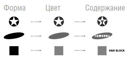 В первую очередь мозг распознает и запоминает форму. Зрительные образы могут запоминаться и узнаваться непосредственно, в то время как слова должны интерпретироваться. Для того чтобы идентифицировать ту или иную форму, не обязательно уметь читать, но чтобы читать нужно уметь идентифицировать формы. Поскольку специфические, оригинальные формы легко запоминаются, создание таких форм очень важная задача формирования индивидуальности.