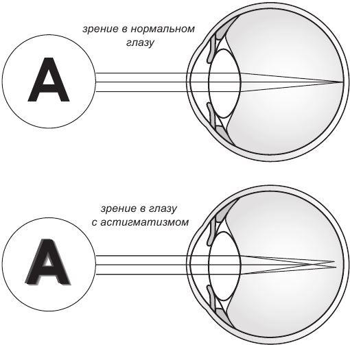 При этом дефекте зрения нарушаются формы хрусталика или роговицы, в результате чего человек теряет способность к чёткому видению. Специалисты различают роговичный и хрусталиковый астигматизм.