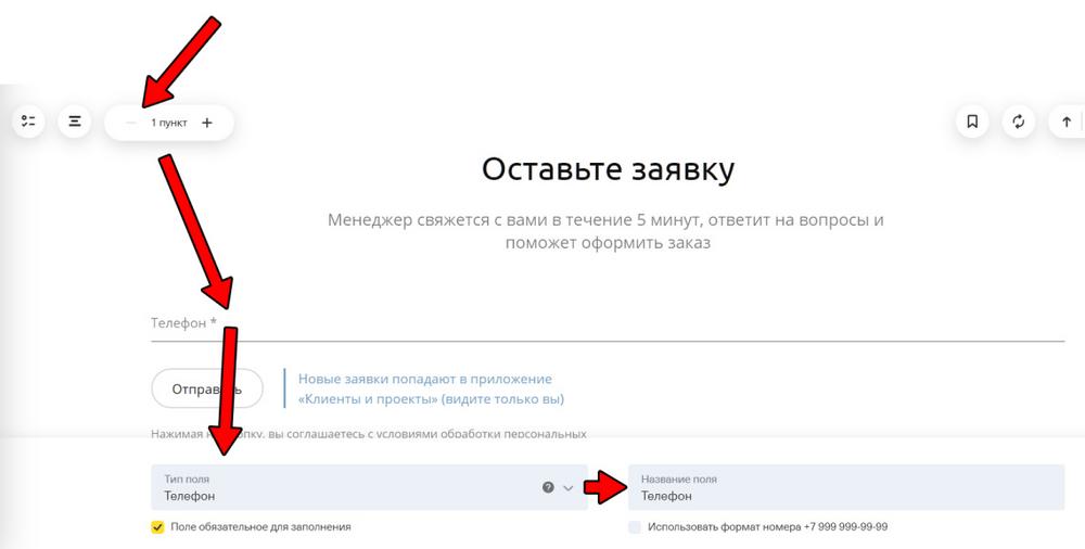 Как изменить поля в форме обратной связи конструктора сайтов Тинькофф