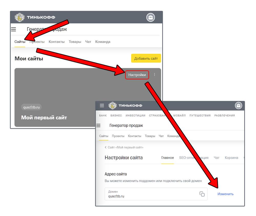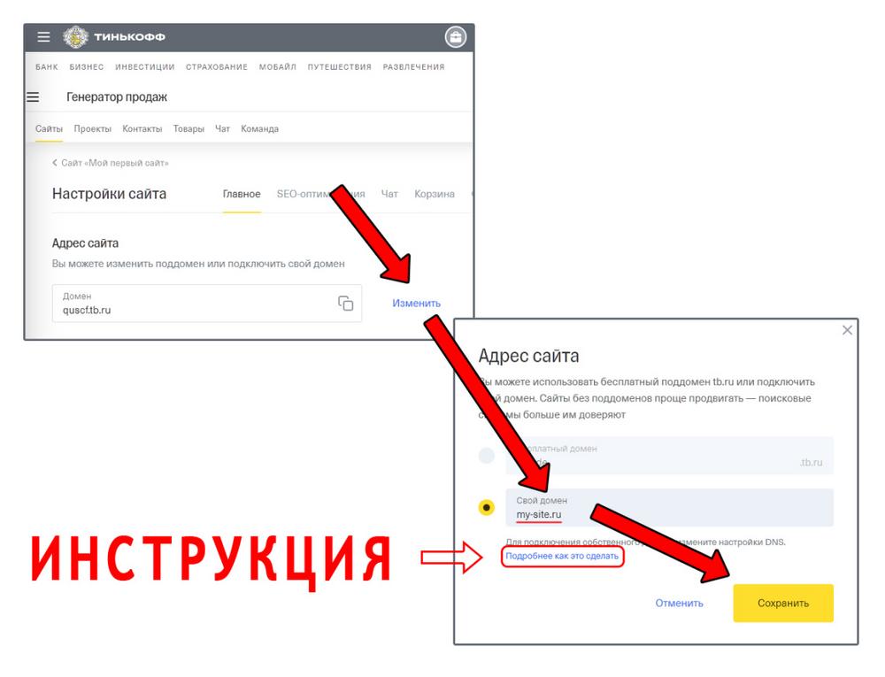 Как изменить адрес сайта в конструкторе сайтов Тинькофф