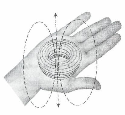 Вероятно есть взаимосвязь с спиралевидным полем руки и спиралевидной энергией кристаллической решетки, оболочки памяти, Кода Жизни (ДНК) клетки тела человека. Мозг человека является источником как торсионных, информационных, так и электромагнитных полей, имеющих также форму тора с вихревой воронкой. Тор является меж пространственным вихрем, воронкой. Поперечное сечение тора, представляет собой петлю в виде восьмерки: это универсальная характеристика магнетизма. Символично, что ДНК клетки тела человека также имеет вид петли.