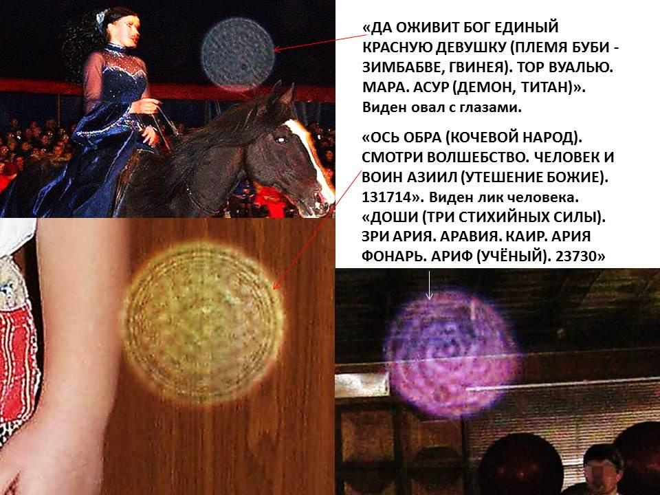 «Да оживит Бог единый красную (красивую) девушку. Тор вуалью (то есть, еле видная). Мара (богиня смерти). Асур (демон)». На втором шаре написано: «Ось обра. Смотри волшебство. Человек и воин Азиил (путешествие божие). 131714». В третьем шаре видна крупная буква С, но с поворотом шара вправо, это буква Д, ниже О. Итак, это дом души. «Доши (три стихийных силы). Зри ария. Аравия, Каир, ария фонарь. Ариф (учёный). 23730). Это уже совсем удивительно, что бестелесные шары, фиксируемые по всему миру, могут нести в себе информацию!