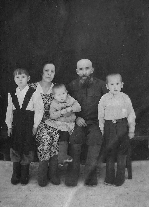 Мария Сергеевна, Николай Митрофанович и внуки: Женя, Люба, Валера. Ферма Харьяга 1950 г. (фото из архива автора)