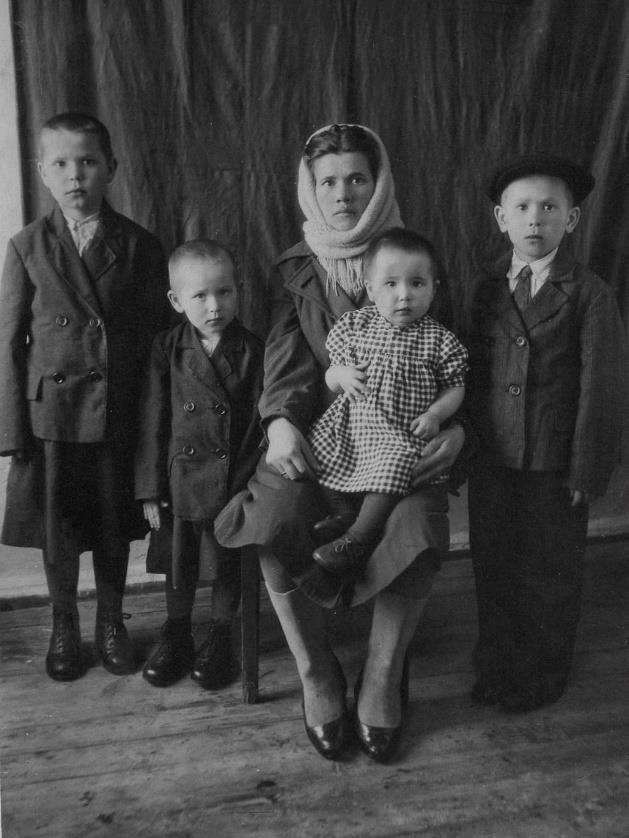 Шура и племянники, слева направо: Женя, Люба, Галя, Валера Харьяга 1950 г. (фото из архива автора)