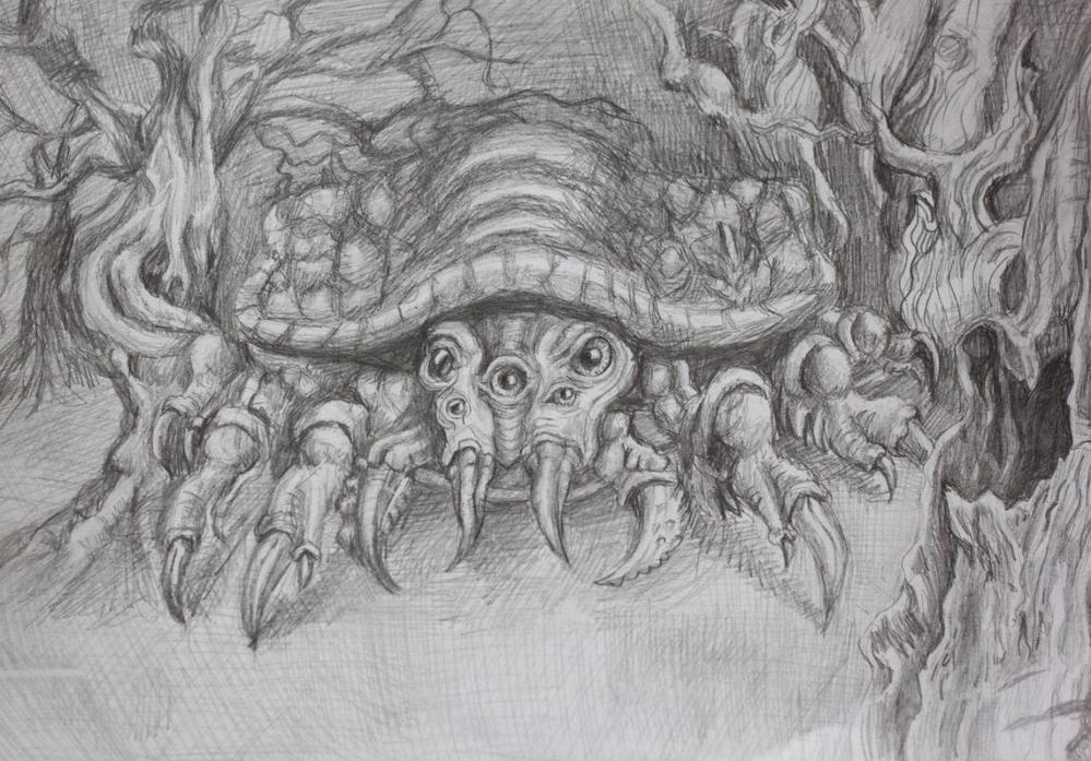 Через пять дней мы снова отправились в поход. В первую ночь зашли в лес, во вторую собирали коконы и в третью вернулись в точку встречи. Выходы из клетки свели к минимуму, а при сборке коконов ставили сигнализации. Работу вне клетки вели не более трех часов. Пауки на нас нападали, но это было уже не так страшно. Хорошо себя показали ракеты с термитными головками. Я неплохо приспособился стрелять из пушки обычными снарядами и не раз попадал в сочленение ног, как оказалось, они были самой слабой точкой монстров. Клетку закрыли прессованными коконами, и кислота, которой они плевались, нам больше не мешала. Три дня работы, два дня отдыха. С каждым циклом мы всё дальше уходили на запад. Я выделил два вида пауков, они серьёзно отличались не только размерами, но и анатомически.