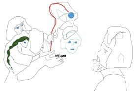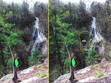 Через некоторое время пребывания у подножия водопада, мне стало плохо. Состояние нормализовалось после ухода от него. Какое-то излучение камень водопада имеет. Вроде, многие были в этих местах, но я вам покажу то, что они не заметили. Итак, начинаем смотреть внимательно. Только, для того, чтобы что-то прочитать, надо увеличивать контрастность фотоснимков и уменьшать яркость. Тогда на камнях проступают буквы и лики: