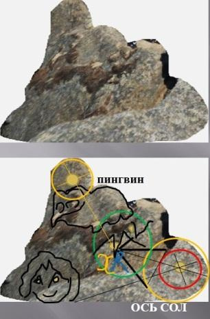 Такую же космическую информацию даёт и скала у озера Черепашье Приморского края (здесь и далее мои личные фотографии и фото, сделанные моей дочерью путешественницей):