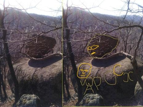 Похоже, что яйцо лежит на спине пингвина, как соседствуют открытые галактики в созвездии Гидра. К тому же, Гидра изображена в нижней правой части постамента. С другой стороны мегалит смотрится как бюст человека. И надписи говорят о Тартарии, горе Роси (России):