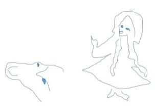 Он смотрит на бледного, поющего Гира. Здесь всё совпало с надписями на скалах. Заметим, что на озеро Урмия нас уже выводила скала великан Парус. Теперь посмотрим на Кан во Франции: здесь нарисована точная копия скалы Парус. Существо показывает левой рукой на Великобританию, где расположен женский дух Вил (это сидящая на рельефе девушка в короне, о ней я уже писала в книгах). Правой рукой оно показывает между мордой лося и девушкой в русском сарафане и с косой: