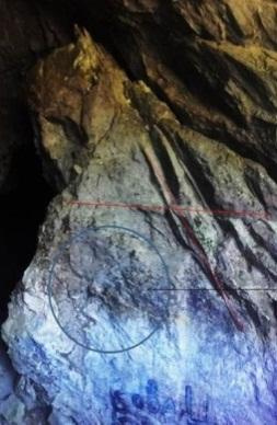 Внутри пещеры, сразу у входа, видна скала в виде стоящего спиной к входу существа, повернувшего голову: